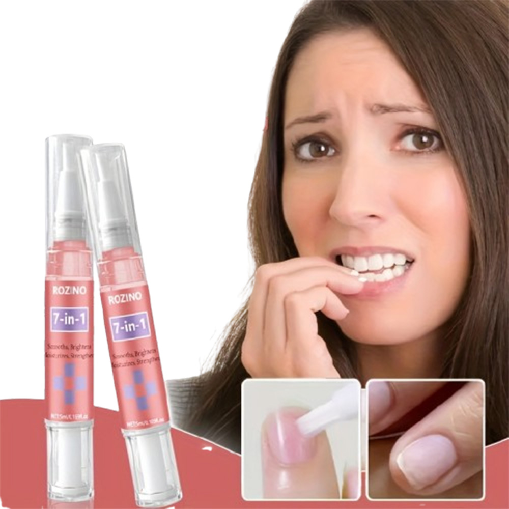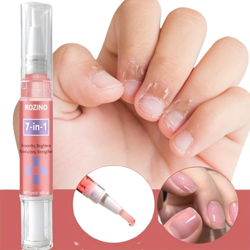 7-in-1 nail care serum with Vitamin E for daily moisturizing, strengthening, and brightening dry or weak nails.