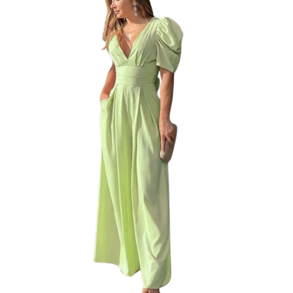 Stay stylish and comfortable this summer with the Elegant V-Neck Women’s Jumpsuit. Featuring a high waist, wide-leg design, and solid color elegance, it’s perfect for casual outings, parties, or evening wear.