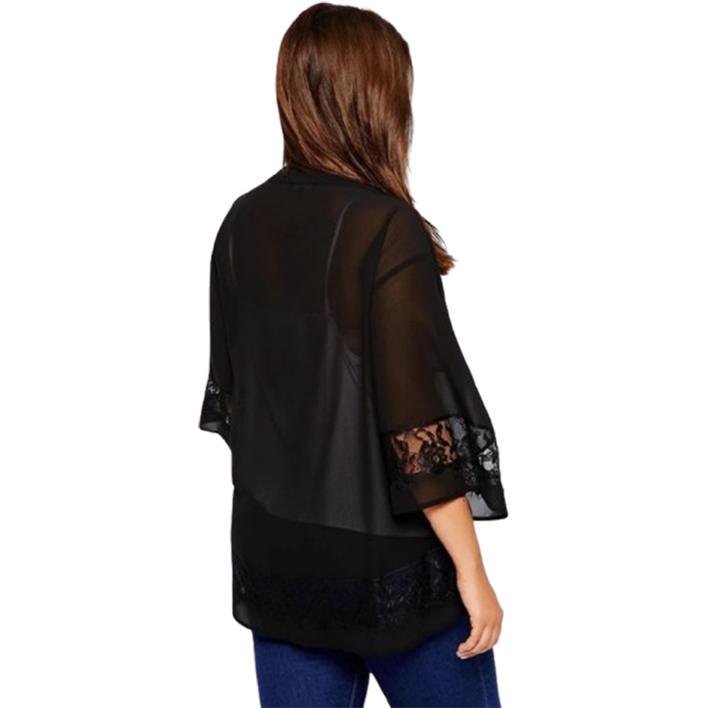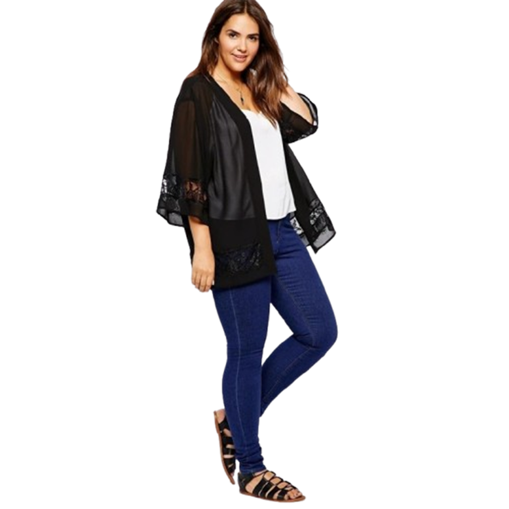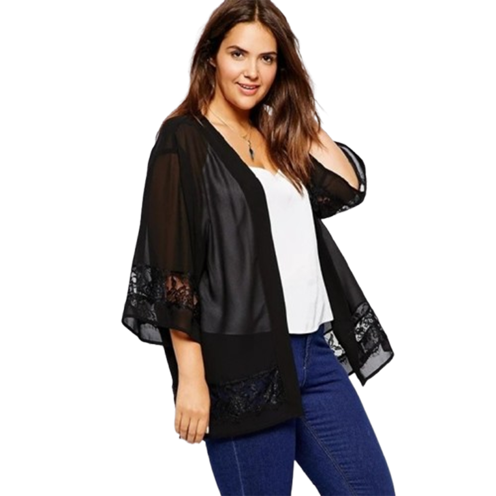Stay effortlessly elegant with this Plus Size Lace Patchwork Chiffon Kimono.